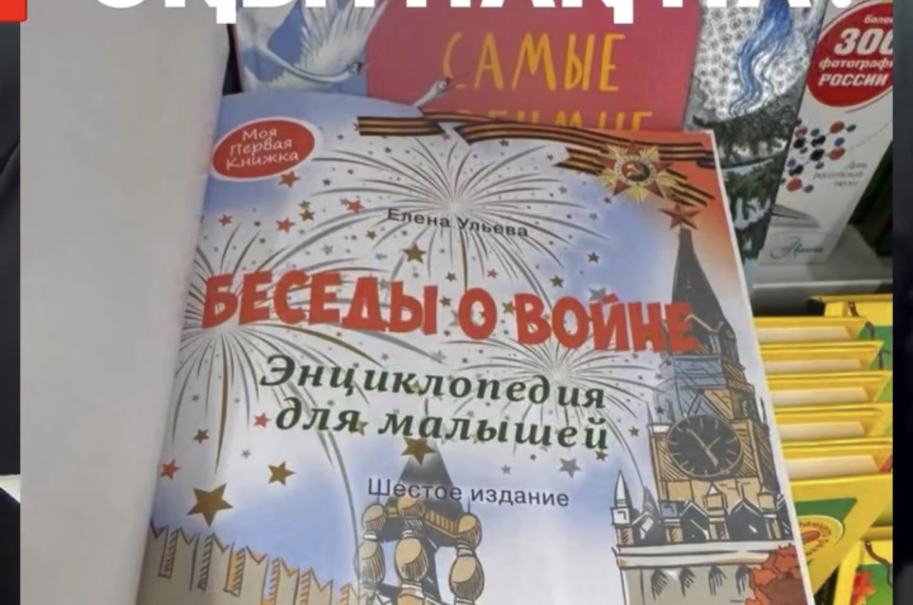 Алматыда “Детский мир” дүкендер желісінің филиалында соғыс тақырыбын насихаттайтын ресейлік “Беседы о войне” балалар оқулығы ашық сатылып жатыр, деп хабарлайды Dalanews.kz.