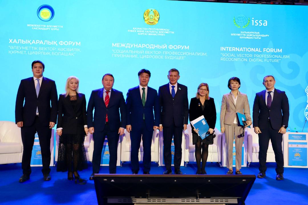 Халықаралық әлеуметтік қамсыздандыру қауымдастығының (ХӘҚҚ) Бас хатшысы Марсело Аби-Рамиа Каэтано форум қатысушыларына жолдаған бейнеүндеуінде Қазақстанның ХӘҚҚ-ның жаһандық қауымдастығын дамытуға қосқан үлесін жоғары бағалап, елдің әлеуметтік саланы цифрландырудағы жетістіктерін ерекше атап өтті.