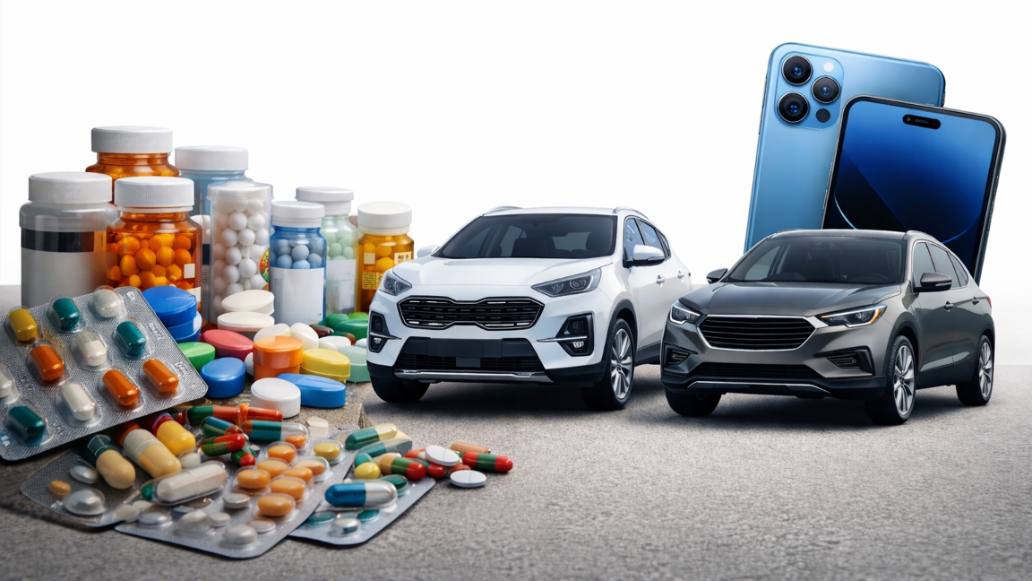 Импортқа келсек, Қазақстан шетелден ең көп әкелетін тауар - жеңіл автокөліктер. Олар жалпы импорттың 4,4%-ын құрайды. Бұдан кейін дәрі-дәрмек (2,8%) және ұялы телефондар (2,4%) келеді. Сондай-ақ автокөлік кузовтары (2,3%) мен көлік бөлшектері (2,2%) де импортта маңызды орын алады.