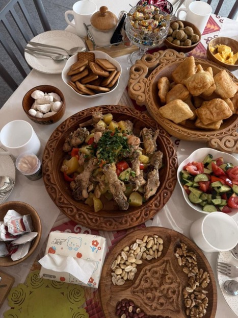 «Таңғы, түскі, кешкі ас болсын, негізгі тағамның қасына қаймақ, ыстық бауырсағымызды дайындап отырамыз. Құрт бар. Біз «жоқ» деп айта алмаймыз, осындай кеңдігіміз бар ғой. Қонақтың көңіліне қарап, сұрағанын тауып беруге асығамыз. Мысалы, шетелдіктердің көбі қара малдың етін жемейді, тауық етін сұрайды. Сұрағанын табамыз. Осындай қанға сіңген қасиетімізді көрген турист, олар көбіне шетелдіктер, міндетті түрде қайта келеді», - дейді ол.