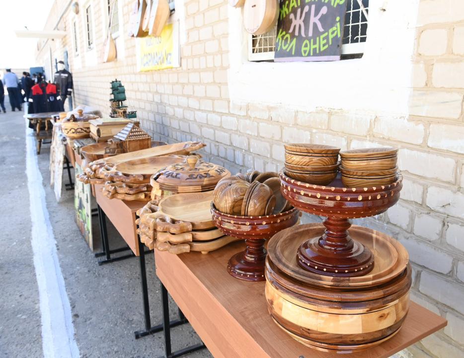 Сонымен қатар, облыс әкімі сотталушы азаматтардың қолдан жасаған ағаш өнімдерінің көрмесімен танысты. Бұл жерде түйеқұс, күркетауық және басқа да құстарды өсіріп,баптау қолға алынған.