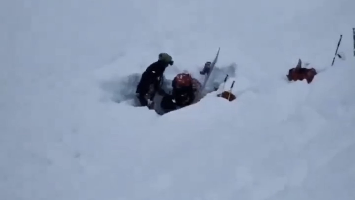 Оқиға санаулы секунд ішінде өршіп, олардың бірі қалың қардың астында қалып қойған. Дабыл түскен соң құтқарушылар жедел жетіп, ер адамды аман-есен қар астынан алып шықты.