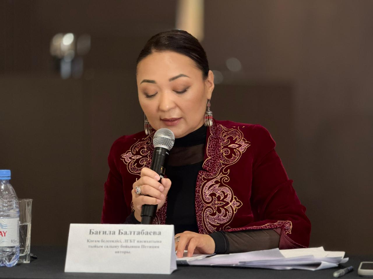 «2019 жылдан бері қарай біржынысты қарым-қатынасты қолдаушылар өз белсенділіктерін күшейтіп, түрлі алаңдарда жалауларын көтеріп жүр. Бұл бізді бейжай қалдырмады. Мен қоғам белсендісі әрі ана ретінде мұндай насихатқа қарсы әрекет етуге мәжбүр болдым. Жастардың осындай ұйымдардың жиындарында жүргенін көріп, үнсіз қала алмадым. Сол себепті дәстүрлі емес қатынастарды насихаттауға толық тыйым салу мақсатында петиция жарияладық. Нәтижесінде 50 мыңнан астам қол жиналып, ұсыныс Үкіметке жеткізілді. Қазір ол Сенаттың қарауында. Мемлекет басшысы қол қойса, заң толық күшіне енеді», – деді Бағила Балтабаева.