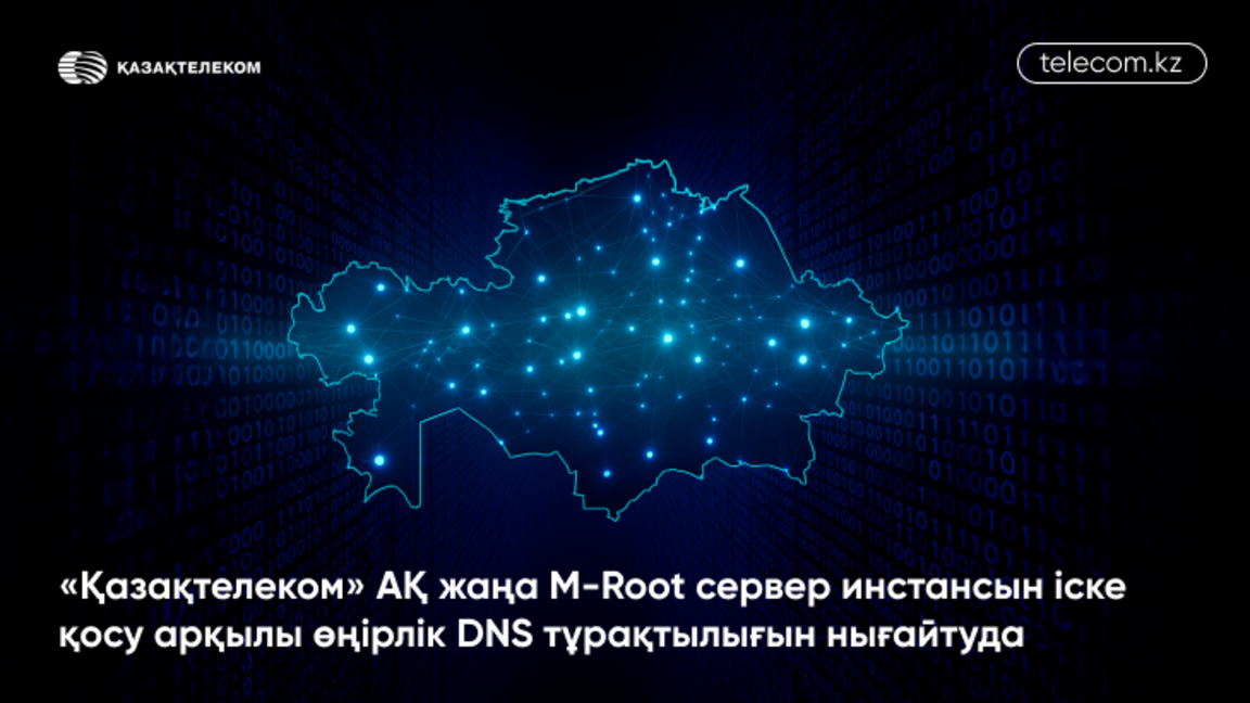 Qazaqstannyń eń iri telekomýnıkasıalyq operatory «Qazaqtelekom» AQ WIDE Project, Japan Registry Services Co., Ltd. (JPRS) jáne APNIC uıymdarymen birlese otyryp, Almaty qalasyndaǵy derekterdi óńdeý ortalyǵynda M-Root serveriniń ınstansyn ornatý arqyly DNS ınfraqurylymyn keńeıtti, dep habarlaıdy Dalanews.kz.