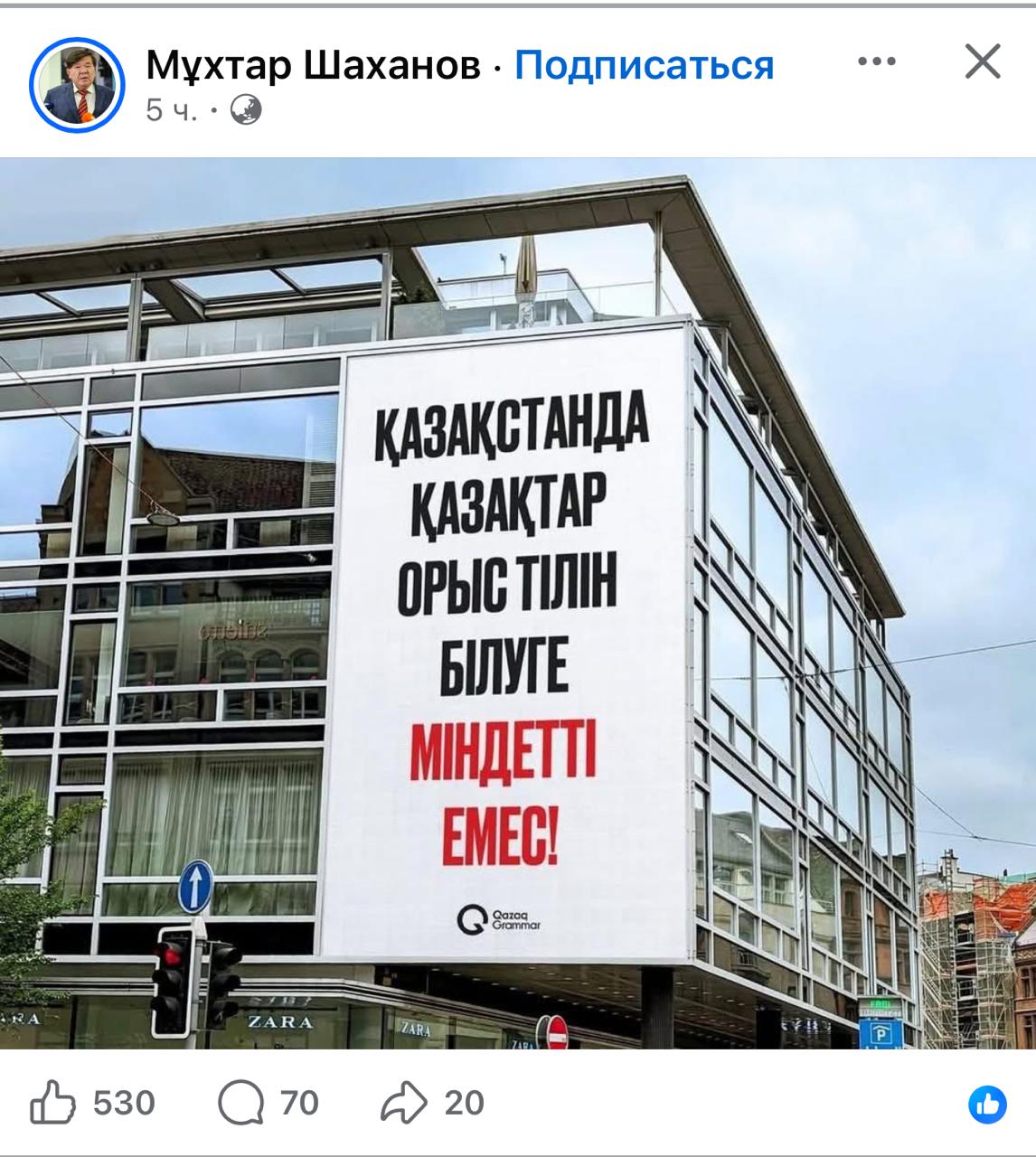 "Қазақтар орыс тілін білуге міндетті емес!": Шахановтың атынан ашылған парақшада ұранды жазба пайда болды