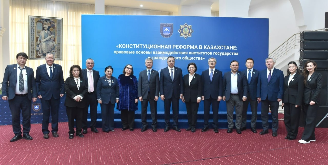 ءال-فارابي اتىنداعى قازۇۋ-دا «قازاقستانداعى كونستيتۋسيالىق رەفورما: مەملەكەت ينستيتۋتتارى مەن ازاماتتىق قوعامنىڭ ءوزارا ءىس-قيمىلىنىڭ قۇقىقتىق نەگىزدەرى» تاقىرىبىندا دوڭگەلەك ۇستەل ءوتتى. اۋقىمدى جيىن الداعى 15 ناۋرىزعا جوسپارلانعان رەسپۋبليكالىق رەفەرەندۋم قارساڭىندا ۇيىمداستىرىلدى، دەپ حابارلايدى Dalanews.kz.