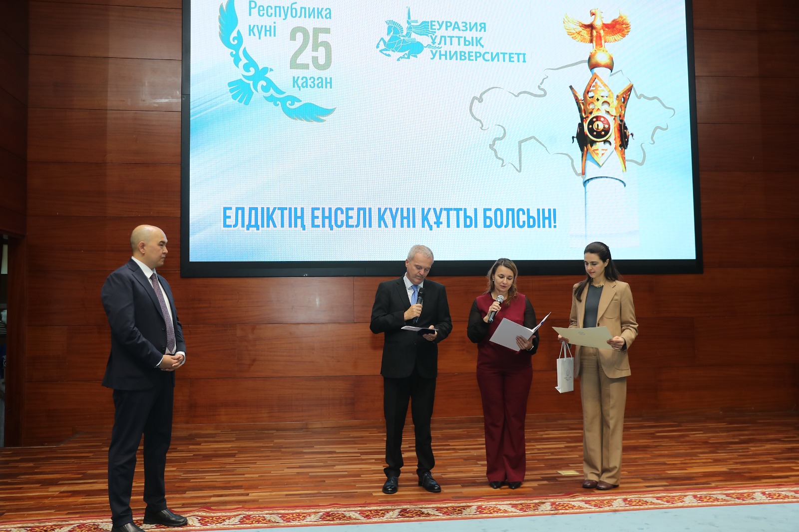 ل. ن. گۋميليەۆا اتىنداعى ەۋرازيا ۇلتتىق ۋنيۆەرسيتەتىندە رەسپۋبليكا كۇنىن مەرەكەلەۋ اياسىندا يتاليانىڭ مەملەكەتتىك ناگراداسى - يتاليا جۇلدىزى وردەنىن (ەنDINE della Stella d ' Italia) ەۇۋ پرورەكتورى دۋمان ايتماعامبەتوۆكە تاپسىرۋ ءراسىمى ءوتتى. جوعارى ماراپاتتى يتاليا رەسپۋبليكاسىنىڭ پرەزيدەنتى اتىنان قازاقستانداعى يتاليا ەلشىسى، مىرزا انتونەللو دە ريۋ تابىستادى، دەپ حابارلايدى Dalanews.kz.