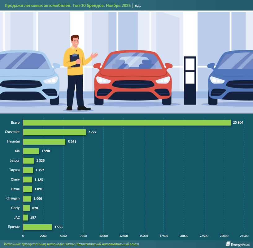 جالپى، 2025 جىلدىڭ قاڭتار–قاراشا ايلارى ارالىعىندا جەڭىل اۆتوكولىك ساتىلىمى 207،6 مىڭعا جەتتى، بۇل 2024 جىلدىڭ وسى كەزەڭىمەن سالىستىرعاندا 15،6% كوپ. بۇدان دا ماڭىزدىسى — 11 ايدا ساتىلعان جەڭىل اۆتوكولىكتىڭ كولەمى بۇكىل 2024 جىلدىڭ رەكوردتىق كورسەتكىشىنەن 1،2%-عا ارتىق بولدى. وسىلايشا، بىلتىرعى رەكورد جاڭارتىلدى.