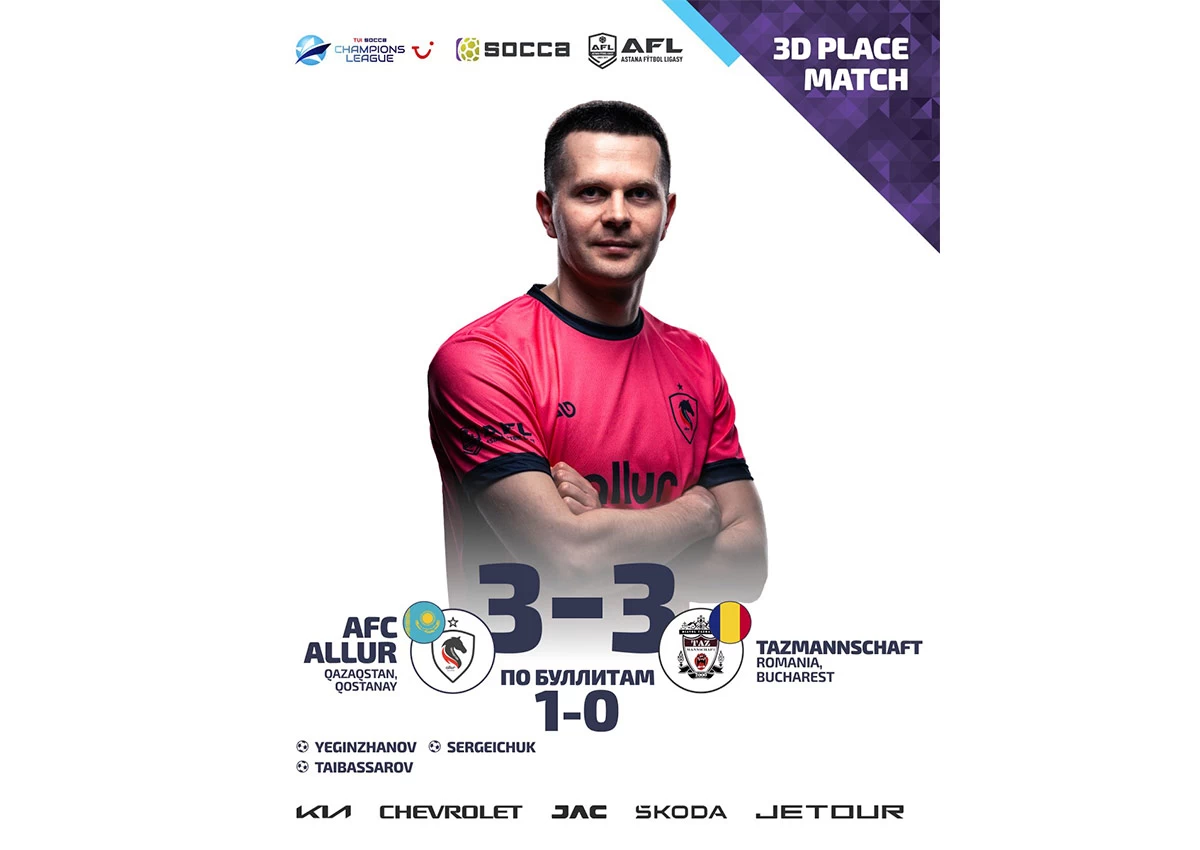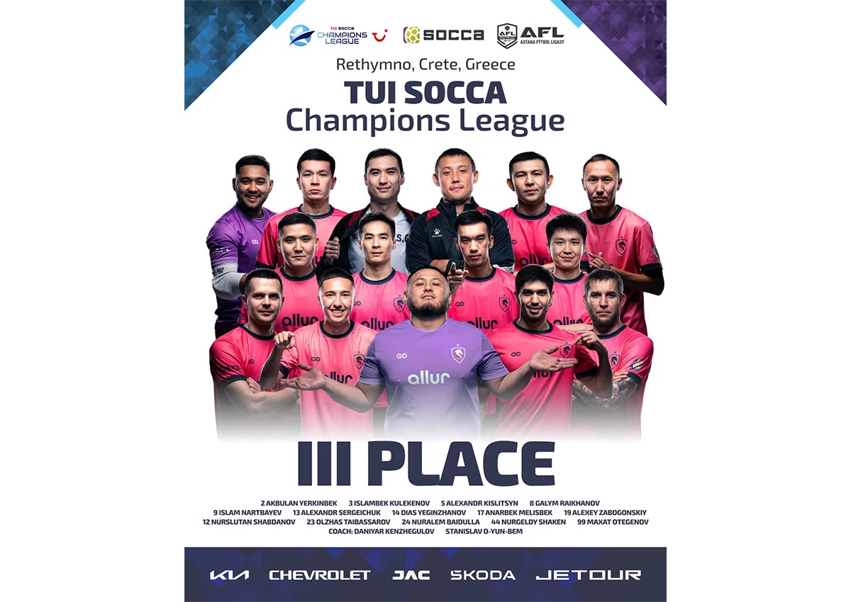 قوستانايلىق AFC Allur فۋتبول كلۋبى SOCCA Champions League 2025 سايىسىندا قولا مەدال يەلەنىپ، قازاقستاننىڭ داڭقىن اسىردى. تۋرنير 17 جانە 20 قازان ارالىعىندا گرەكيانىڭ رەتيمنو قالاسىندا ءوتتى. وعان 4 قۇرلىق جانە 35 ەل، 80 قالادان جينالعان 106 كوماندا قاتىستى.