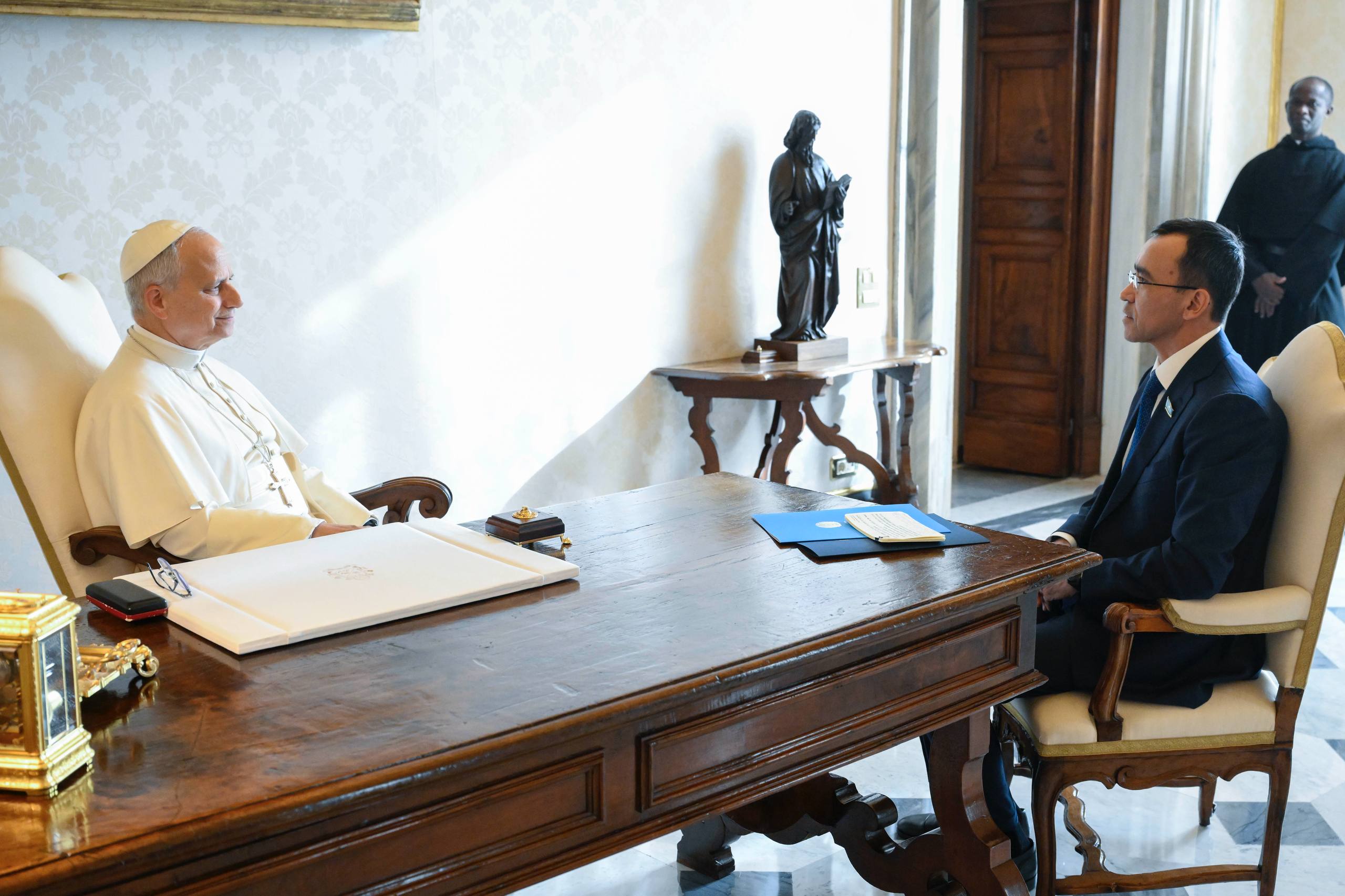 "سەنات ءتوراعاسى ريم پاپاسى XIV لەوعا قازاقستان پرەزيدەنتى قاسىم-جومارت توقايەۆتىڭ جىلى لەبىزىن جانە ەلىمىزگە اپوستولدىق ساپارمەن كەلۋ جونىندەگى شاقىرۋىن جەتكىزدى. ماۋلەن اشىمبايەۆ كەزدەسۋدە قازاقستاننىڭ ۆاتيكانمەن كوپجوسپارلى ىنتىماقتاستىقتى ودان ءارى نىعايتۋعا مۇددەلى ەكەنىن اتاپ ءوتتى"، - دەپ جازىلعان حابارلامادا.
