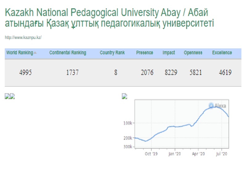 Әлемдік рейтингке Қазақстан Республикасының 128 жоғары оқу орны кірді. Бұл рейтингте Abai University сайты 4995 орынды иеленді.