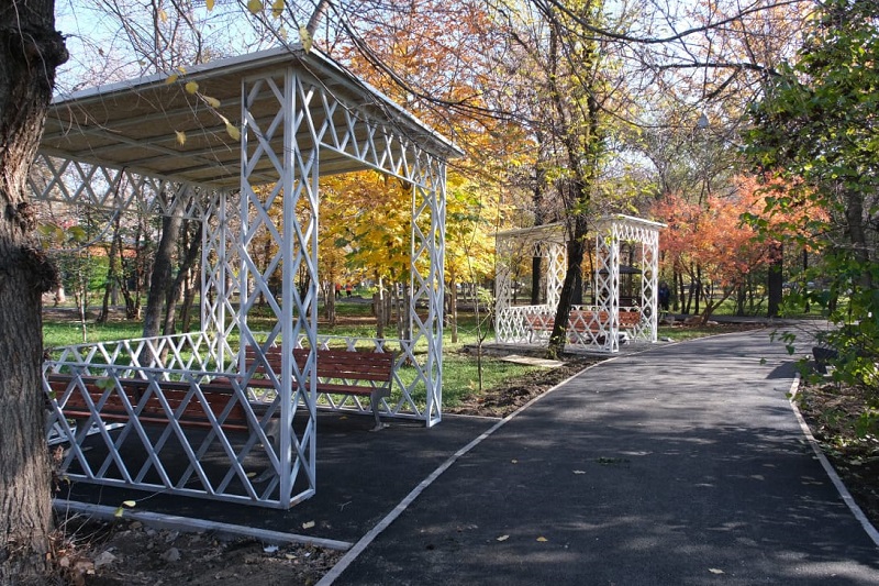 Абаттандыру жұмыстарының 90% жүргізілген. Саябақта әткеншегі бар 17 пергола, жарық тартылған 6 беседка, 3 шахмат үстелі, 5 ауыз су бұрқағы орнатылған.