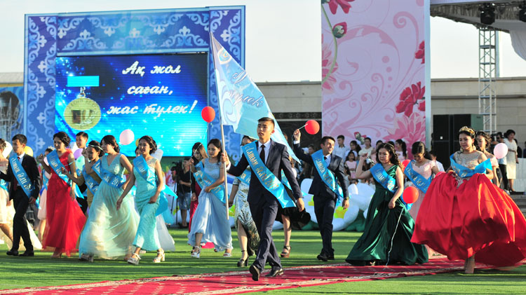 – Сіздер әлемге Тәуелсіз Қазақстан деп танылған мемлекетте туып-өсу, ел дамуымен бірге білім алу бақыты бұйырған ұрпақсыздар. Бұл сіздерге мақтанышпен қатар зор міндеттер жүктейді, – деп атап өтті облыс әкімі. Бұдан соң өңір басшысы сөзін әрі сабақтап: – Бүгінгі күні өскелең ұрпақтың терең білім мен тәлімді тәрбие алуына бүкіл елдегідей өңірімізде қолайлы жағдай жасалып отыр. Соған сәйкес ардақты ұстаздардан алған сапалы білім мен саналы тәрбие арқасында, ел сенімін ақтап, қасиетті Отанымыздың нағыз патриоттары болатындарыңызға сенемін. Адамзат баласы өмір бойы білім алады. Өйткені, білім – таусылмас қазына, баға жетпес байлық. Сіздерден жаңалыққа жаны құмар, әлем өркениетіне жақын, озық ойлы жастар ретінде үлкен үміт күтеміз. Сапарларыңыз сәтті болсын! – дей келе, А. Баталов түлектерді марапаттау рәсіміне көшті. Үздіктердің кеудесіне «Алтын белгі» тағып, планшеттер сыйға тартты.