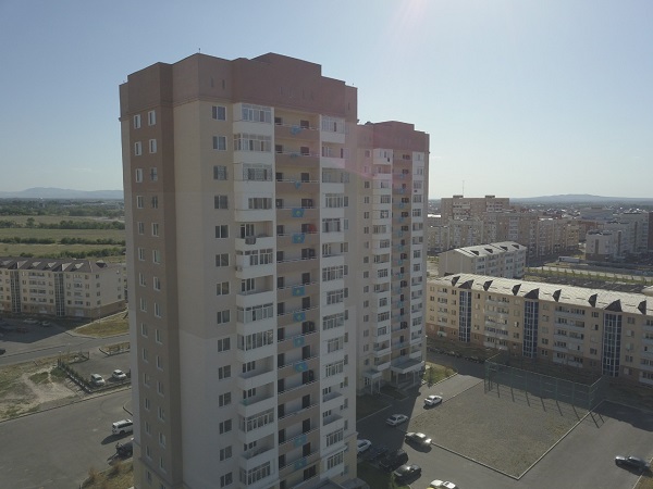 Талдықорған қаласындағы «Болашақ» шағын ауданындағы еңселі 16 қабатты, үш бірдей тұрғын үйге 45 көк туымыз орнатылды.