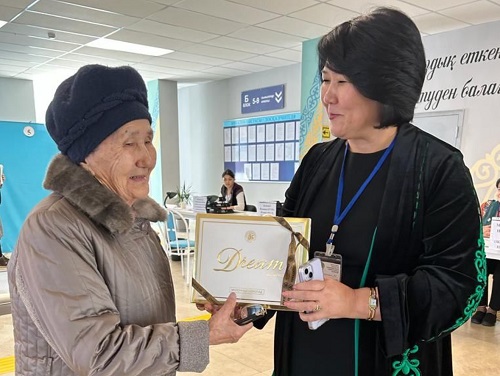 Сайлау комиссиясының мүшелерін өздерінің азаматтық ұстанымдарының мұндай көрінісі бей-жай қалдырмады. Дауыс беруге келген барлық қарт азаматтар назардан тыс қалмауда.