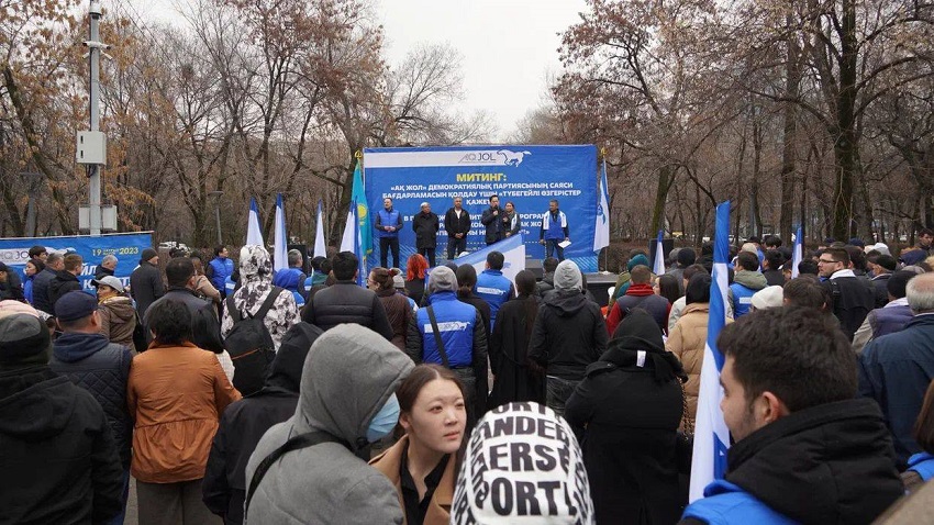 Митинг қонақтары – «Желтоқсан» қозғалысының басшылығы және басқалары алдағы сайлауда «Ақ жол» демократиялық партиясын қолдайтындықтарын айтып, алматылықтарды оның кандидаттарына дауыс беруге шақырды.
