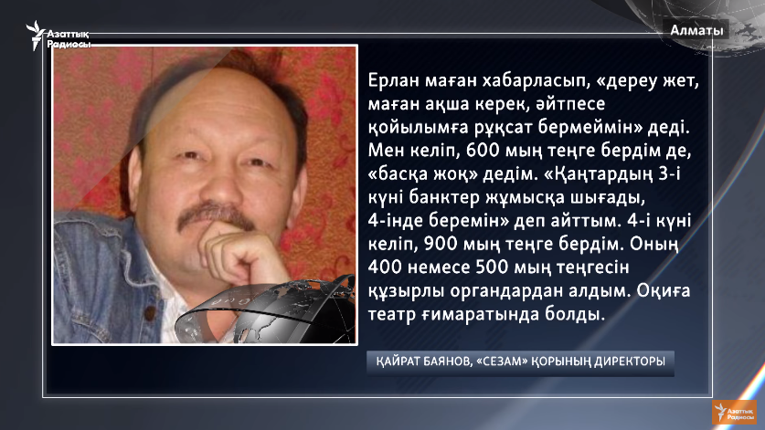 Әу баста бір топ қайраткер шығып, қылмысын өзі мойындап тұрғанына қарамастан, Ерлан Біләлді «сүттен ақ, судан таза» деп бетін жыртып, жылап-сықтады, «дарынды адам пара алмайды» десіп еңіресті. Бірақ, ақша көрсе актер де жолдан таяды екен, дарындылығына қарамастан (шынын айтсам, қандай образ сомдағанын білмейді екенмін).