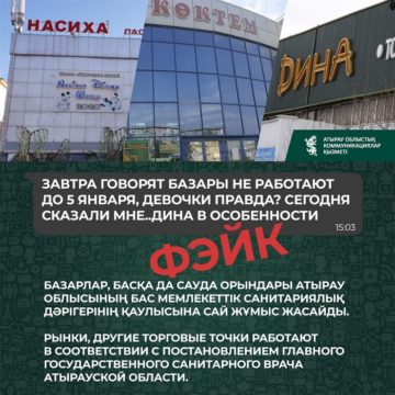 Кей әлеуметтік желіде «Атырауда базарлар 5 қаңтарға дейін жұмыс істемейді» деген жалған ақпарат тарады.