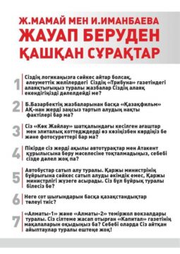 Бұған қоса заңгердің төтесінен қойған сұрақтарына жауап бермеген. Белгілі болғандай, Ж.Мамай адвокаттың сауалына жауап беруден бас тартқан, ал И.Иманбай болса мүлдем қашып кеткен.