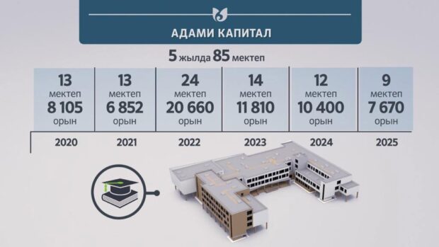 2025 жылға дейін Шымкентте 85 мектеп ашылады, оның 33-і мемлекет есебінен, 12-сі мемлекеттік-жекеменшік әріптестік негізінде, 40 мектепті жеке инвесторлар салады. Оның ішінде биыл 32 мектептің құрылысы басталады. Алдағы үш жылда Шымкентте үш ауысымды мектеп мәселесі толық шешіледі.