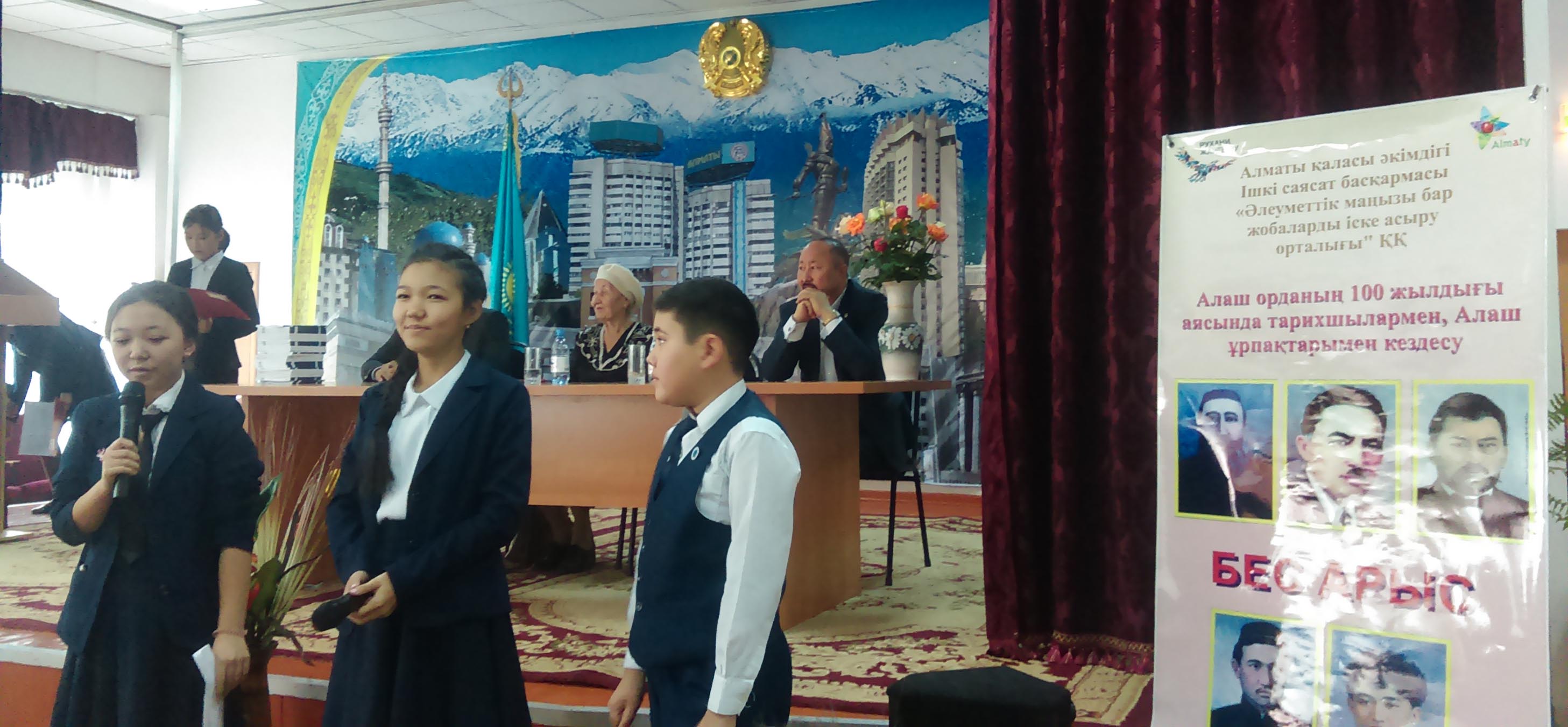 «Әлеуметтік маңызы бар жобаларды іске асыру орталығы мен Алматы қаласы Орталықтандырылған Кітапхана жүйесі №6 кітапхана бөлімшесі, №64 мектеп және №53 мектеп гимназиясы бірігіп, Алаш Орданың 100 жылдығына орай кездесу кешін өткізді. Кездеу кешінің мақсаты: Қазақстан қоғамын жаңғыртуда Алаш қозғалысының тәуелсіздік мұраттары үшін күрестегі рөлі мен маңызын, Алаш арыстарының еңбегін жас ұрпаққа насихаттау.