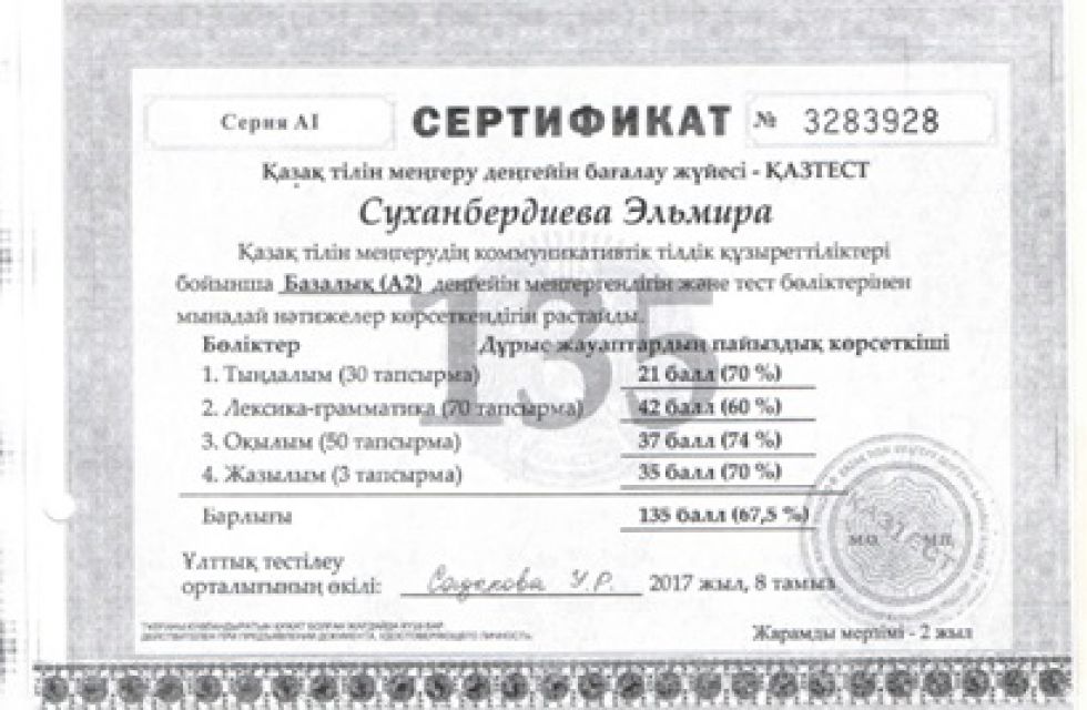Айтпақшы, шенді ханымдар "Қазтест" жүйесінде қазақ тіленінен сынақ тапсырып, жоғарғы 135 баллға ие болғаны жайындағы сертификатқа ие болғанын орталықтың әлеуметтік желідегі парақшасында жарияланғаннан кейін бұл журналистердің күдігі қоюлана түскен.