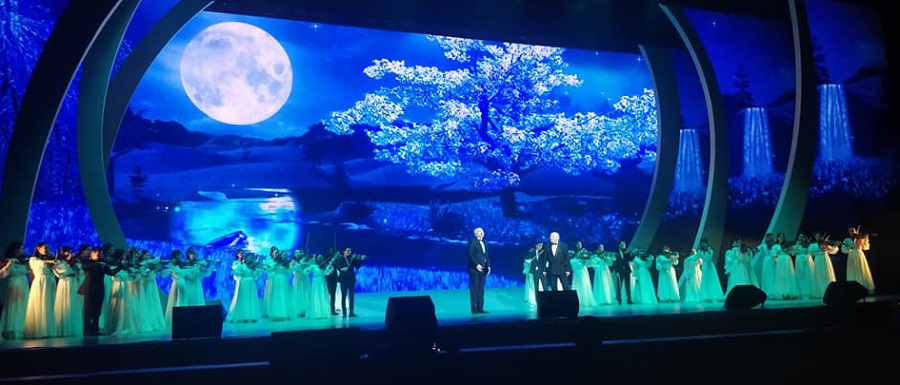 Алтыншыдан, кештің тағы бір жаңалығы – «Сегіз аяқ» дәстүрлі әншілердің орындауында симфониялық оркестрмен берілді.