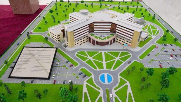 Инвестициялық жобаны Денсаулық сақтау министрлігі арқылы мемлекеттік - жекеменшік әріптестік аясында YDA Group түрік инвесторы жүзеге асыруда. Нысанның құны 200 млрд.теңгеден асады. 2019 жылы басталған құрылысты 2022 жылға қарай аяқтау жоспарлануда. Өңірдегі ғана емес, республикадағы ең ірі медициналық мекемелердің бірі болатын аурухананың жалпы ауданы 80 мың шаршы метрден асады. Әлемдік стандарттарға сай салынып жатқан аурухана толық пайдалануға берілгеннен кейін 2000-нан астам медицина қызметкері тұрақты жұмыспен қамтылады.