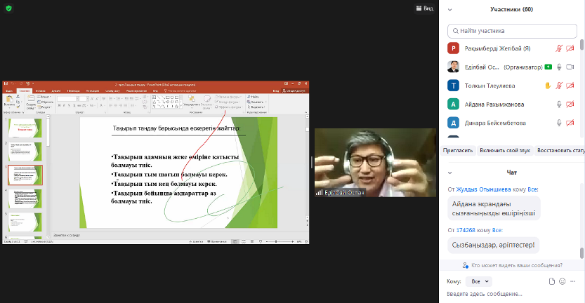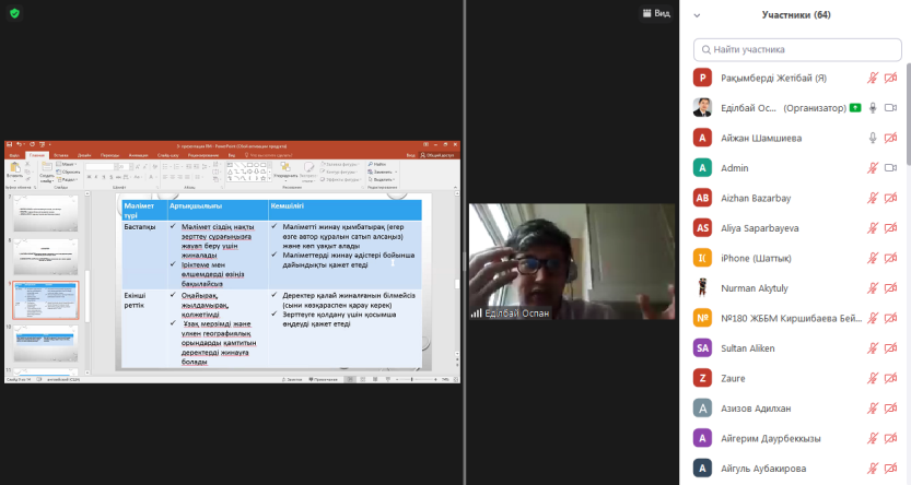 Курс спикері Абай атындағы ҚазҰПУ-дың аға оқытушысы, «Болашақ» бағдарламасының түлегі Едильбай Оспанов мұғалімдерге ғылыми жоба әзірлеу, ғылыми жобаны жоспарлау, тақырып таңдау тақырыптарында бағыт берді. Курс соңында қатысушыларға сертификат берілді.