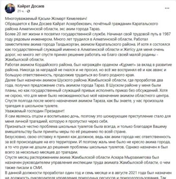 – Қазір мені болған оқиғалардан кейін ешқандай басшы жұмысқа қабылдамайды. Жаңа Қазақстанды құруға атсалысқым келеді. Менің күш-қуатым толы, халық үшін қызмет етуге құлшынып тұрмын. Мемлекеттік қызметтегі барлық уақытта арыма дақ түспеді, ар-ұятыммен әрекет еттім, –деп жазды Қайрат Досаев.