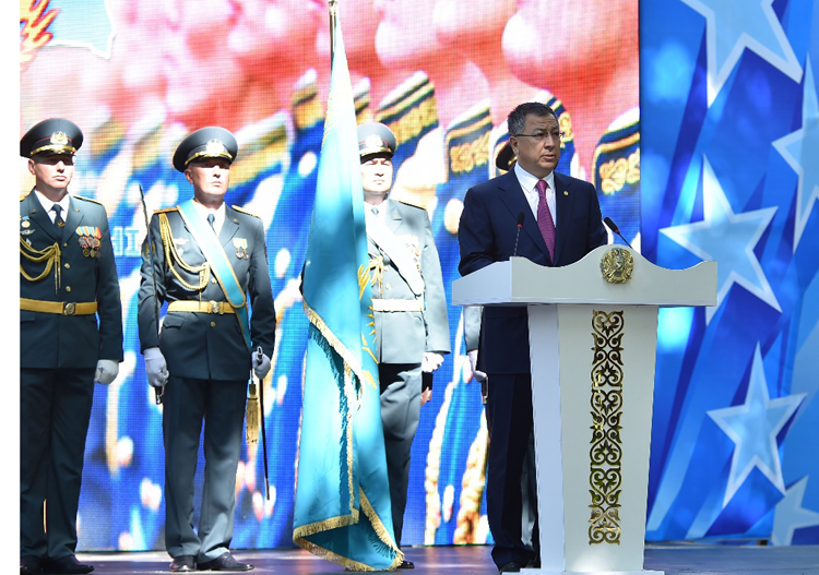 «Бүгінде Елбасының, Қазақстан Қарулы Күштерінің бас қолбасшысы Нұрсұлтан Назарбаевтың стратегиялық көрегендігінің арқасында Қазақстан армиясының жаңа келбеті, отаншыл рухы қалыптасты. Қарулы Күштер мемлекетіміздің тұрақты кепіліне айналды. Сондықтан бұл күн – Отанды қадірлейтін, оның тарихын құрметтейтін, айбынды әскеріміздің атағын асқақтатқан, мемлекетіміздің қуатын айғақтайтын күн», – деді әкім.