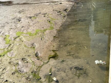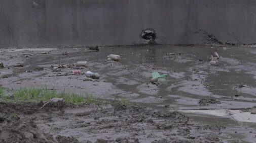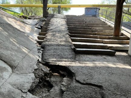 Үстінен бомба түскендей қирап жатқан баспалдақтан өткеннен кейін, ол Есентай өзенінің түбіндегі масқара лайды көреді.