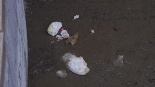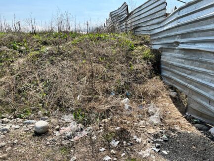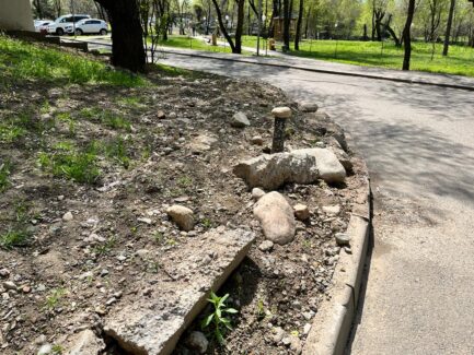 Жақын аймақта көгалға төге салған құрылыс қоқыстары шашылып жатыр. Олар асфальтқа да шыға бастаған.