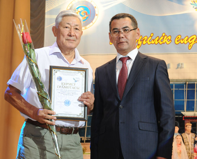 Көпшілікке терең ой салған тамаша арнаудан кейін сахна төріне ҚР Мемлекеттік қызмет істері және сыбайлас жемқорлыққа қарсы іс-қимыл агенттігінің Алматы облысы бойынша департамент басшысы Серікбай Нұрғисаев шығып, мерекеге орай жылы лебізін білдіріп, тіл мерейін асқақтатуда сүбелі үлес қосып келетін азаматтарды департаменттің Құрмет грамотасымен марапаттады.