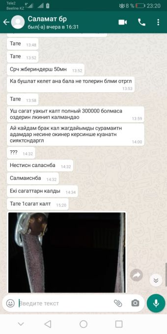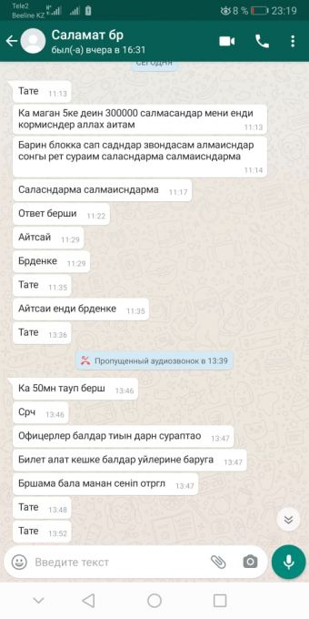 Сондай-ақ, Бекзат ұлының мінез-құлқынан мынандай біртүрлі жайтты аңғарған: ол ақшаны тек WhatsApp-тағы хат алмасу кезінде сұрайды, ал телефон арқылы ешқашан сұрамаған.
