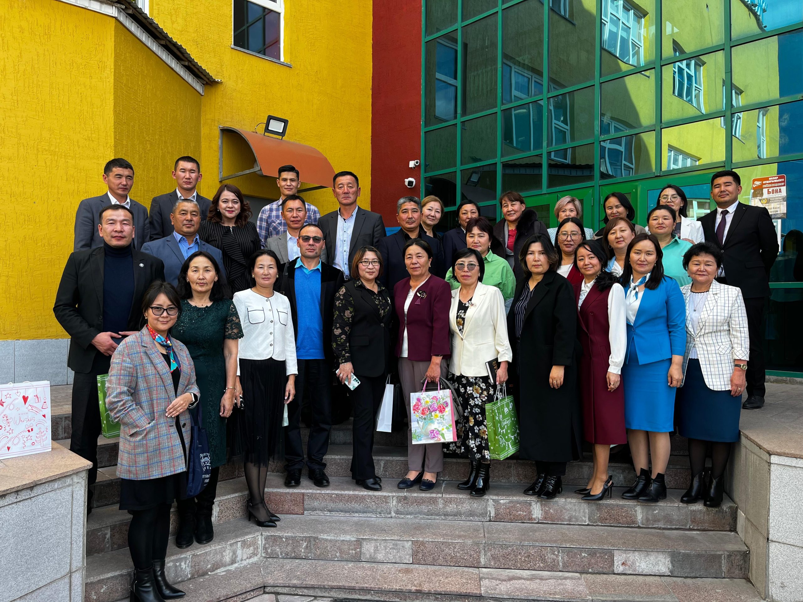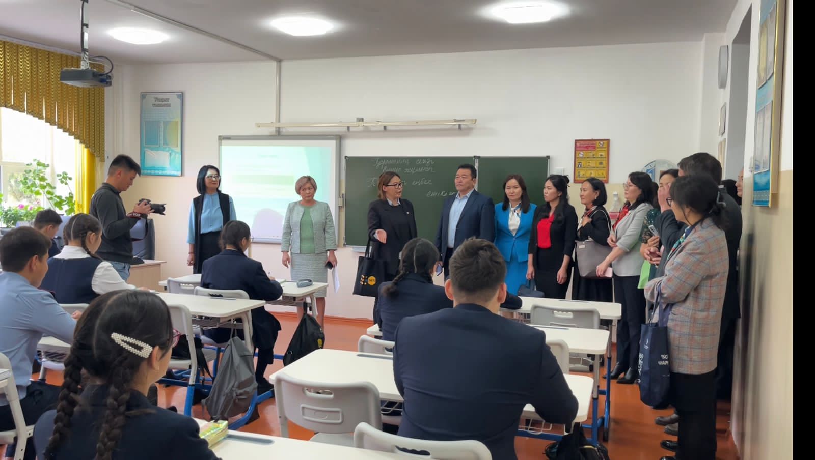 Моңғолияның Білім және ғылым министрлігінің, Білім институтының, БҰҰ Балалар қорының (ЮНИСЕФ) Моңғолиядағы және Баян-Өлгий аймағы губернаторы кеңсесі өкілдері, сондай-ақ қандастар көп шоғырланған елді мекендердегі мектеп директорларынан құралған делегацияға мектеп директоры Жазира Аяпбергенқызы білім ұясының тарихын және материалдық-техникалық базасын таныстырды.