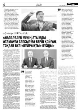 – 2015 жылы Қытай Халық Республикасының Шаңқай қаласында 150 мемлекеттің өкілдері қатысқан үлкен жиында және онда өткен конкурста, әлемнің барлық басты тілдеріне аударылған Шыңғыс Айтматов екеуміз бірлесіп жазған «Ғасыр айрығындағы сырласу» («Құз басындағы аңшының зары») атты кітабымыз «ХХІ ғасырдың ең озық, парасатты кітабы» деп бағаланды. Бірақ, ол туралы Қазақстанның бірде-бір басылымы, телеарнасы жұмған аузын ашқан жоқ. Себебі Н.Назарбаев баспасөздерде, телеарналарда менің атымды атамауға тапсырма беріп қойған. Осы кезеңде Қазақстан Республикасының Сенат төрағасы Қасым-Жомарт Тоқаев қана Назарбаевтан сескенбей құттықтау Жеделхат жіберді, – деген болатын ақын.