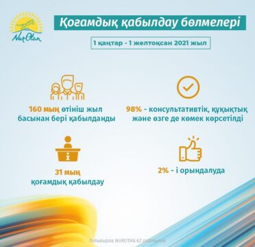 Жыл басынан бері «Nur Otan» партиясының қоғамдық қабылдау бөлмелеріне 160 мыңға жуық қазақстандық жүгінді. Депутаттар мен мемлекеттік органдардың басшылары 31 мыңнан астам қоғамдық қабылдау өткізді деп хабарлайды партияның nurotan.kz. ресми сайты.
