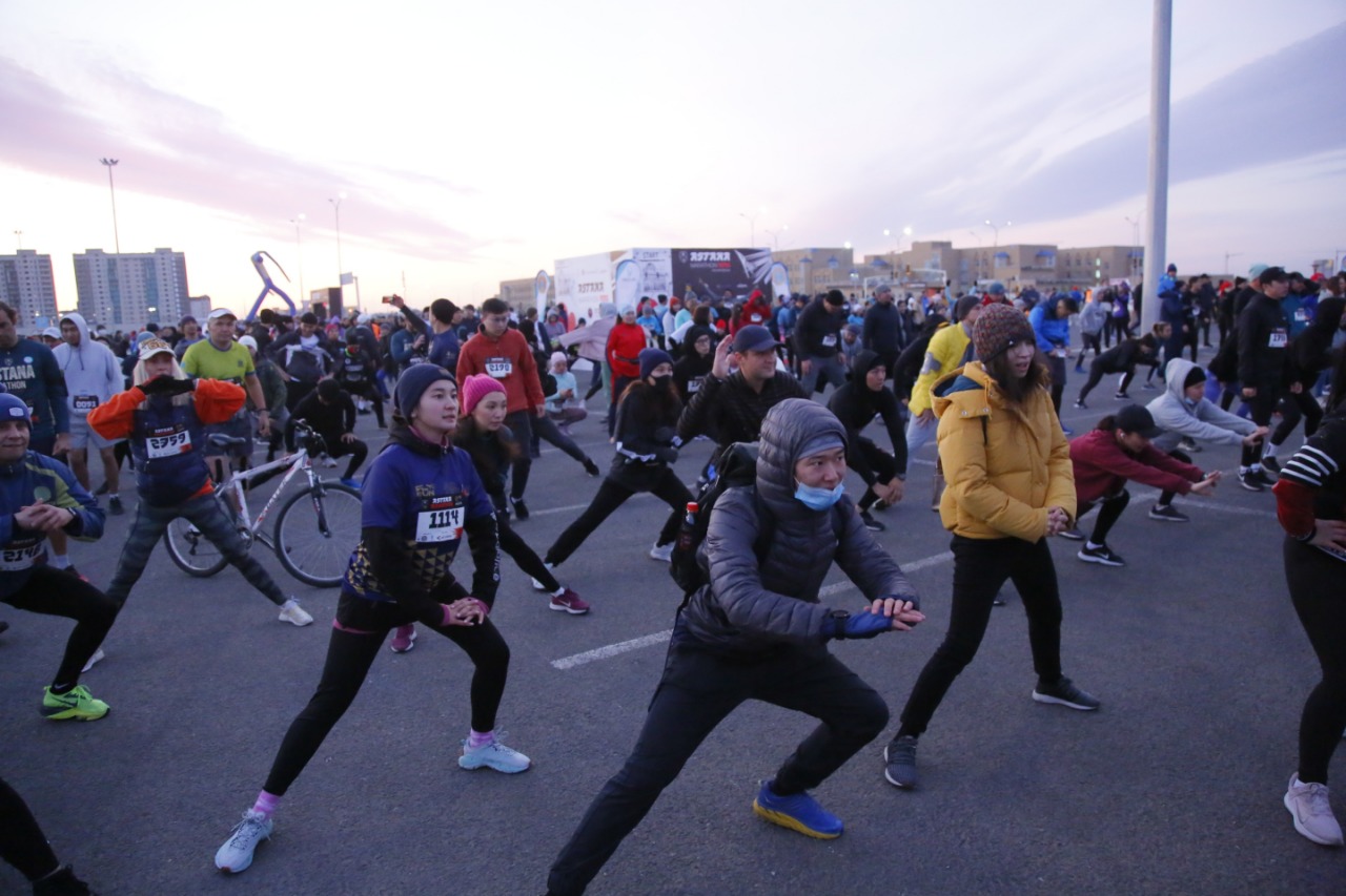 Қатысушылар EXPO алдындағы алаңда белгіленген орынға бір сағат бұрын жинала бастады. Таңертеңгі сағат 6-дан бастап олар жылынып, әлеуметтік қашықтықты ұмытпастан жаттығулар жасады. Мұнда ұйымдастырушылар шай немесе кофе ішіп, жылынуға болатын фудкорт ұйымдастырды.