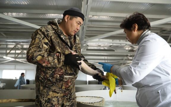 Бұдан кейін Нұрлан Ноғаев Каспий теңізінде жойылып кету қаупі бар бекіре тұқымдас балықтардың 6 түрін арнайы бассейндерде өсіретін және бекіре уылдырығын өндіруге дайындық жұмыстарын жүргізетін "Kazakh osseter" зауытына барды. Ғылыми-өндірістік кәсіпорын 7 жылдан бері жұмыс істеп келеді.
