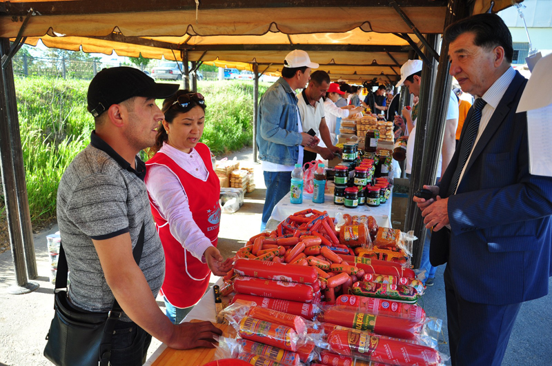 Бүгін Оңтүстік Қазақстан облысында 1 мамыр – Қазақстан халықтарының бірлігі күні мерекесіне орай отандық тауар өндірушілердің жәрмеңкесі өтті. «Еңбек» жаппай кәсіпкерлік бағдарламасы қатысушыларының жәрмеңкесінде ет және сүт өнімдері, жеміс-жидек, көкөністер мен қолөнер шеберлерінің бұйымдары сатылды. Мемлекеттік бағдарлама аясында өз кәсібін дөңгелеткен 60 кәсіпкер келушілерге өздерінің тауарларын төменгі бағада ұсынды.
