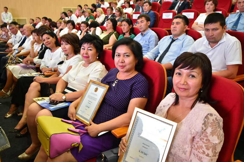 Тамыз конференциясында білім саласында талай жылдардан бері үлгілі қызмет етіп келе жатқан өңірдегі үш ұстазға – атап айтқанда, Шымкент қаласы, №39 М.Жұмабаев атындағы жалпы орта мектебінің бастауыш сынып мұғалімі Айнұр Дүйсебековаға, Шымкент қаласы, №66 Қазығұрт жалпы орта мектебінің информатика пәнінің мұғалімі Жанат Мұсаеваға және Түркістан қаласы, №9 Некрасов атындағы гимназиясының қазақ тілі пәні мұғалімі Венера Батырқұловаға пәтер кілті табысталды. Сонымен қатар, жиында облыс әкімінің Грамотасына 5 падагог ие болса, 8 ұстаз облыс басшысының Алғыс хатын алды. Қазақстан Республикасы Білім және ғылым министрлігінің наградалары аясында 5 мұғалім «Ы.Алтынсарин» төсбелгісін, 5 ұстаз «Білім беру ісінің құрметті қызметкері» төсбелгісін, 4 сала қызметкерлі «Құрмет грамотасын» және 4 мұғалімге «Алғыс хаты» бұйырды.