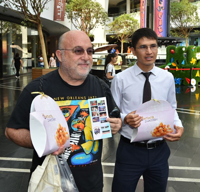 Оңтүстіктің белсенді және талантты жастары Астанағы Оңтүстік өңірінің күндері аясында жергілікті жұртты ертеңгі Құрбан айт мейрамымен құттықтап, жергілікті халық пен шетелдік қонақтарға 5000 қалташа  яғни, 450 келі тəтті тоқаш таратты.