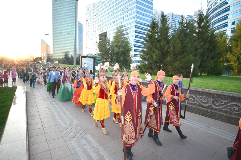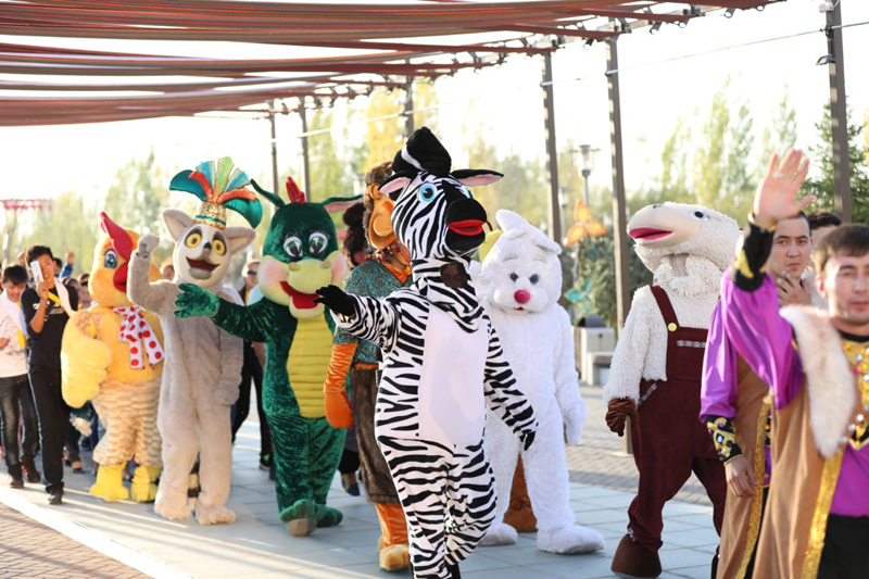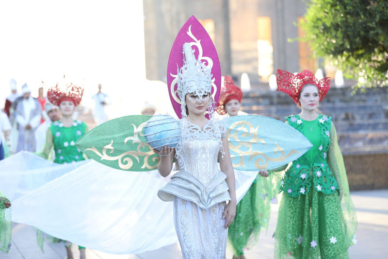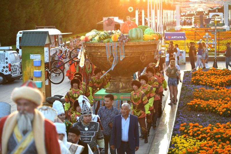 Керуен сапында Алтын адам, Арыстанбаб, Қожа Ахмет Ясауи, Әл-Фараби сынды тарихи тұлғалар мен ғұламалар, хандар мен батыр, билер бейнесіндегі өнер азаматтары, ЭКСПО аруы мен ұлттық киім киінген әнші, бишілер, цирк өнерпаздары және тайқазан, арба сынды ұлтық құндылықтарымызды айшықтайтын бұйымдар бар. Өңірдің тарихи келбетін танытар өнер көшіне 500-ге жуық өнерпаз қатысып, жергілікті композиторлар Ш.Қалдаяқов, С.Бəйтерековтің əндерін қосыла орындады.