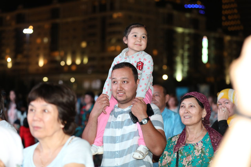 Концертте ҚР Мәдениет қайраткері Айжан Таженова «Домбыра туралы баллада» орындаса, «Оңтүстік-Цирк» мекемесінің «Х-бэнд» эстрадалық джаз ансамблі заманауи шығармалар ұсынды. Ш.Қалдаяқов атындағы облыстық филармонияның әншілері «ЭКСПО-2017» туралы ән шырқаса, «Семсер» тобы "Отырардағы той" əнімен өңірдің киелі өлкесін дəріптеді. "Өркен" отбасылық ансамблі, "Асу" триосы мен көптеген өнер саңлақтары өнер думанымен Астана кешін асқақтатты. Оңтүстіктің тумасы, Қазақстанның еңбек сіңірген əртісі, эстрада əншісі Гүлнəр Сиқымбаева астаналық көрерменді əсем даусымен тəнті етті.