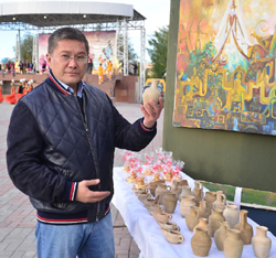Облыс орталығындағы мерекелік шарада отырарлық қолөнер шеберлері төл өнерімізден шеберлік сабақтарын көрсетіп, көрмеге қойылған 200-ден аса туындыларын таныстырды.