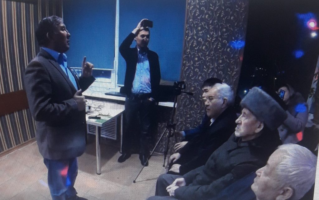 Қазақ тілділердің сауалдарына жиынның соңында жауап беретінін ескертті. Сөз басында интернационалистер ұйымы жөнінде айта келіп, Павлодарда ұйымның филиалын құратынын, оның төрағалығына жергілікті азаматты бекіткенін жария етті де, жанында тұрған сақалды жас жігітті нұсқады.