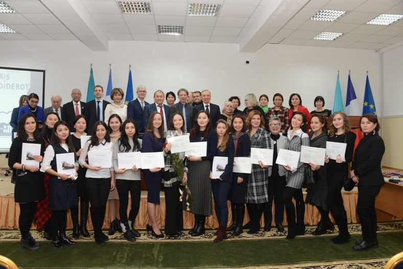 Түлектерге диплом тапсыру салтанатты рәсіміне Қазақстандағы Францияның Төтенше және Өкілетті Елшісі Филипп Мартине, Париж-Дидро Университетінің халықаралық ынтымақтастық мәселелері жөніндегі вице-президенті Антуан Казе, Шығыс тілдері және өркениеттері ұлттық институтының (INALCO) халықаралық ынтымақтастық мәселелері жөніндегі вице-президенті Анн Гринберг, «ҚР Тұңғыш Президенті – Елбасы» Қорының атқарушы директорының орынбасары Игорь Рогов, Абай атындағы ҚазҰПУ-дың бірінші проректоры Мақтағали Бектемесов, Абай атындағы ҚазҰПУ-дың ғылыми жұмыс және халықаралық ынтымақтастық жөніндегі проректоры Ақтолқын Құлсариева, Сорбонна-Қазахстан Институтының содиректорлары Гүлмира Нурлихина, Мари-Анн Серв қатысты.