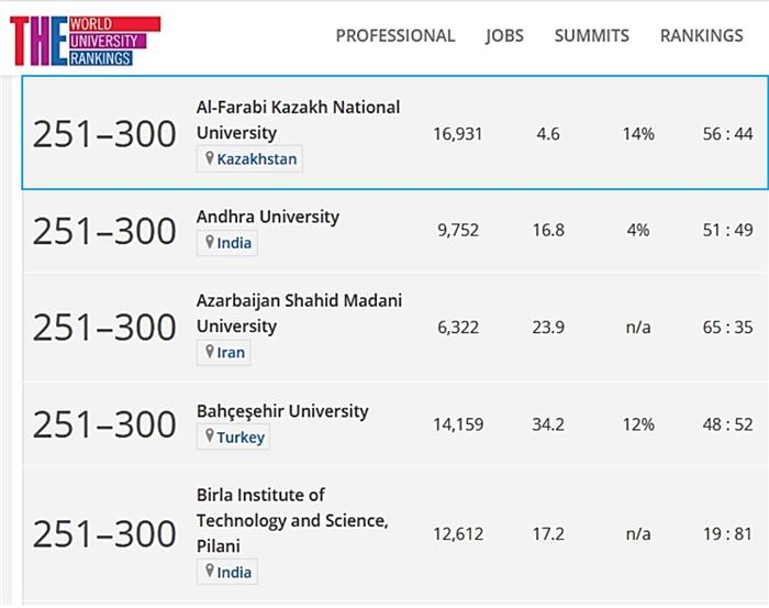 THE рейтингісінде Азияның 27 елінен 417 университет ұсынылған. Бірінші ондыққа Қытайдың бес университеті, Сингапур мен Оңтүстік Кореяның екі университеті мен Жапонияның бір ЖОО кірді. Бірінші орынды Цинхуа университеті, екінші орынды Сингапур ұлттық университеті, үшінші орынды Гонконг ғылым және технологиялар университеті иеленсе, рейтингте ең көп орынды Жапонияның 103 ЖОО-лары иеленді.