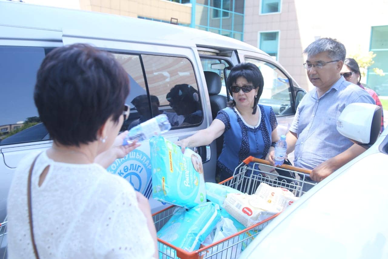 Азаматтық қоғамның белсенділігін, жанашырлығын айғақтайтын осынау қайырымы мол істен шет қалмау мақсатында Қазақ ұлттық қыздар педагогикалық университетінің қызметкерлері де бір күндік жалақысын апаттан зардап шеккен ағайынға аударуды жөн деп тапты. Жиналған қаражатқа азаматтарға қажетті деген тұрмыстық заттар, киім-кешектер мен азық-түлік алынып, ол бекеттерге орналасқан тұрғындарға толықтай таратылды,» – дейді Қыздар университетінің Әлеуметтік даму жөніндегі проректоры Жаңагүл Сұлтанова.
